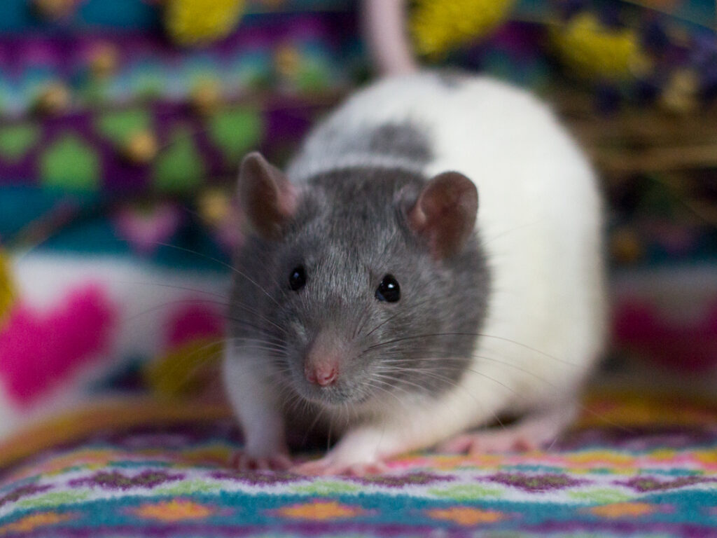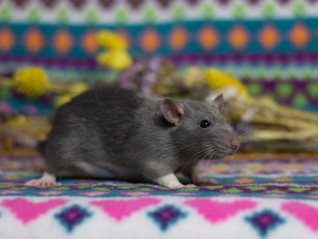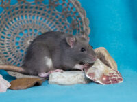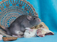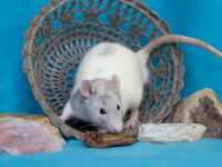 Dit nest is een zeer bewuste broer x zus testkruising. De vader van Zhu Li en Archer is Ollie, de superleuke lieve maar stamboomloze man van mijn partner. In de regel zet ik geen stamboomloze ratten in, de risico’s zijn immers groot en vooral onbekend: je hebt geen idee wat er mogelijk in de lijn zit. Echter loop ik vast met mijn lijnen, en in veel ratten waarvan de lijn wel bekend is zitten er dingen achter die ik ab-so-luut niet in mijn lijnen wil zoals harley, fuzz, marble, etc.. Helaas worden deze variëteiten vaak juist door rattery’s gefokt, terwijl de doorsnee kleinschalige broodfokker geen idee heeft van zulke variëteiten en het vaak bij simpele oudere kleuren en dergelijke houdt. Daarom schat ik de kans op zulke variëteiten juist lager in bij een stamboomloze rat die zeer waarschijnlijk van een lokale kleinschalige broodfokker komen, maar eerlijk: zeker weten doe ik het niet, en ik weet dus niks over de gezondheid en karakters van de voorouders.